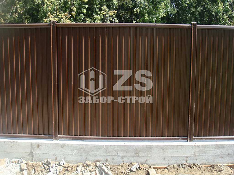 - Забор на ленточном фундаменте из профнастила 25 метров